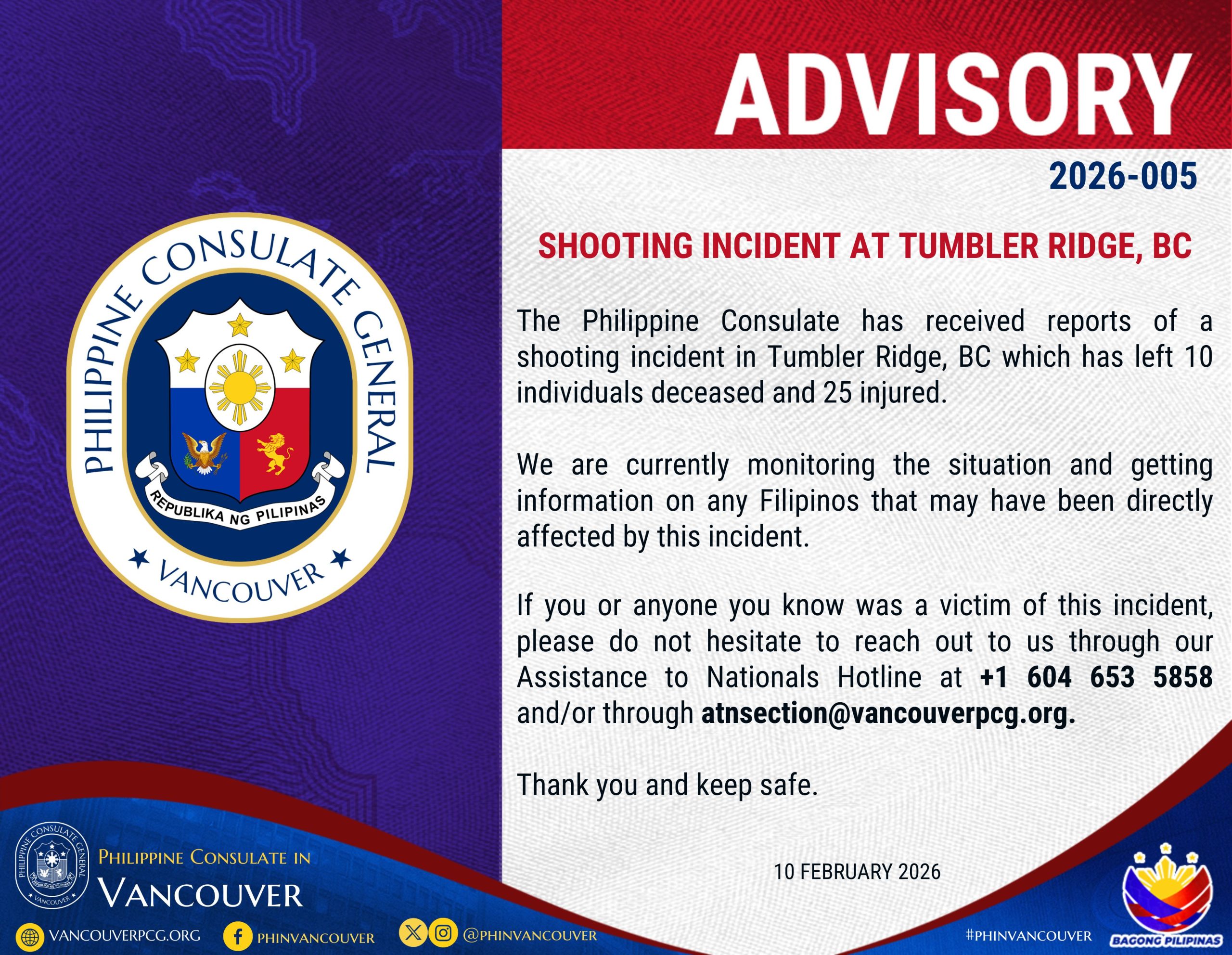 ADVISORY 2026-005: SHOOTING INCIDENT AT TUMBLER RIDGE, BC