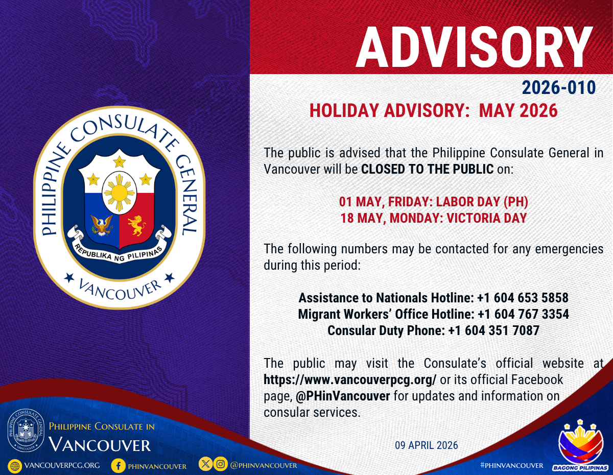 ADVISORY NO. 2026-010: HOLIDAY ADVISORY FOR MAY 2026