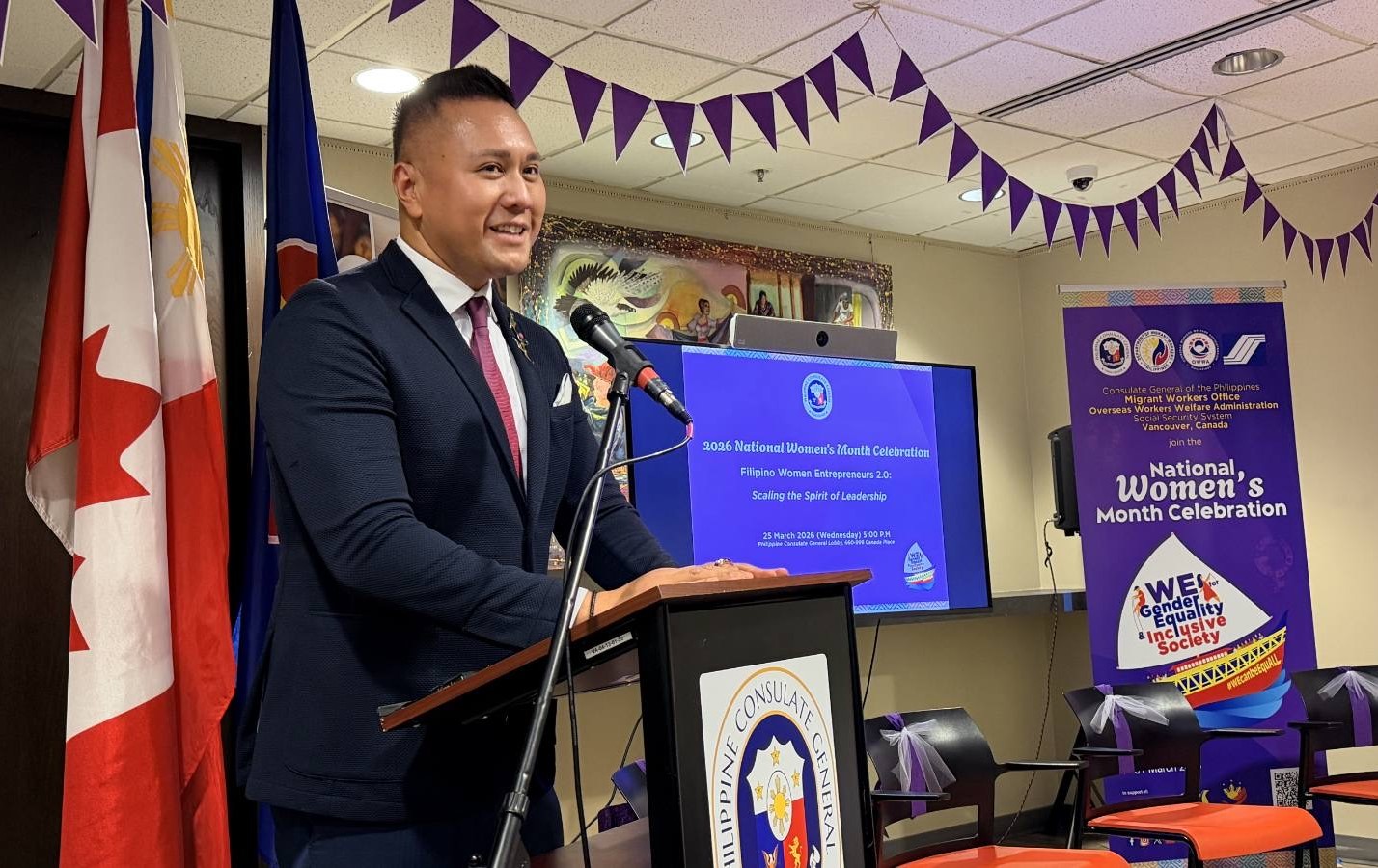 26 March 2026, Vancouver, B.C. - In a vibrant celebration of National Women’s Month, the Philippine Consulate General in Vancouver successfully hosted “FILIPINA WOMEN ENTREPRENEURS 2.0: Scaling the Spirit of Leadership” on 25 March 2026 at the Consular Lobby of the Consulate General. The event brought together nearly 90 guests, including aspiring entrepreneurs, community leaders, and distinguished dignitaries, to honor the modern-day Babaylan—the visionary Filipina leader.
