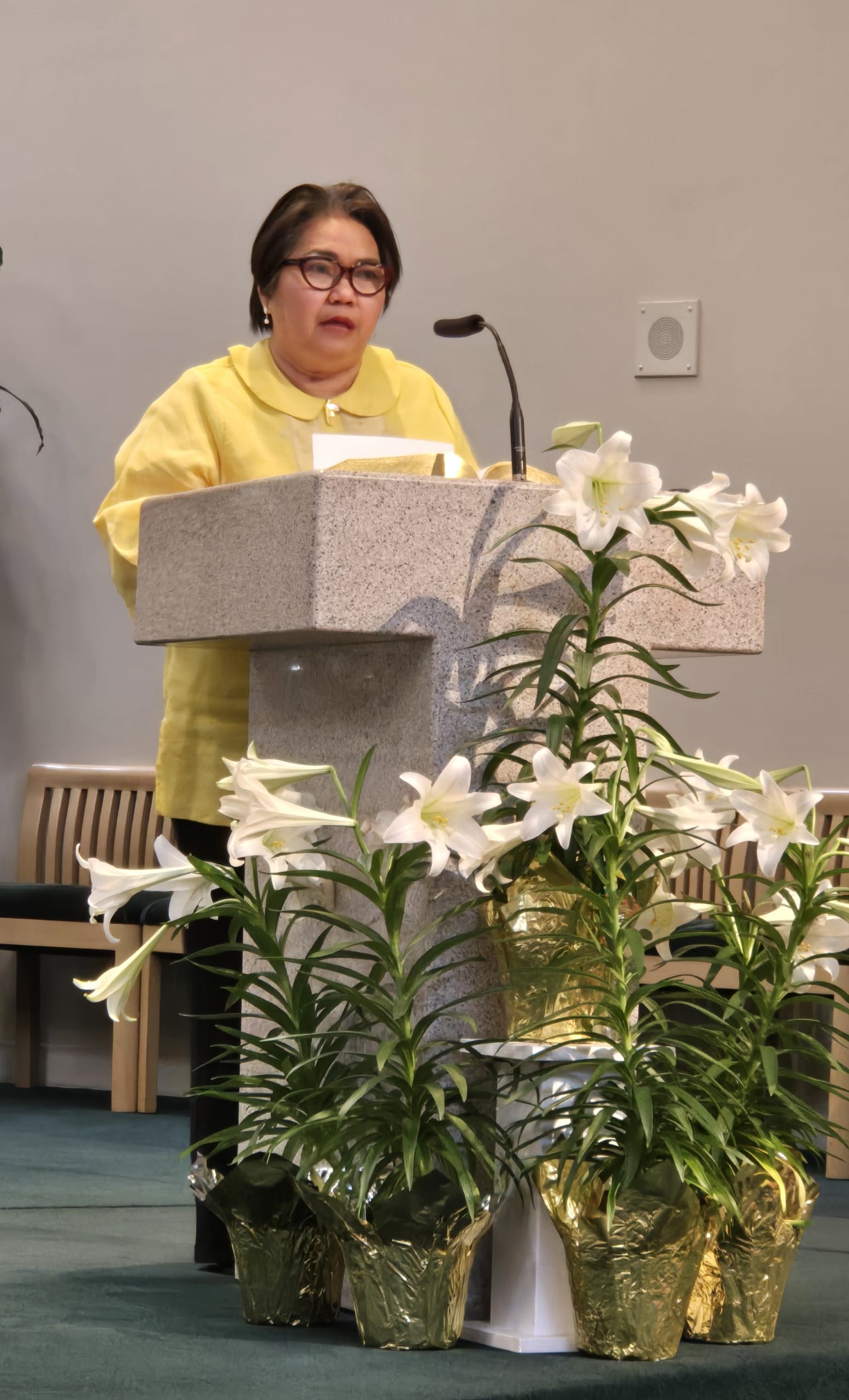 (Photos Above) Consul General Gina Jamoralin delivers her message and Fr. Mark Hoo, OP (right) officiates the mass. (Photos by Vancouver PCG)
